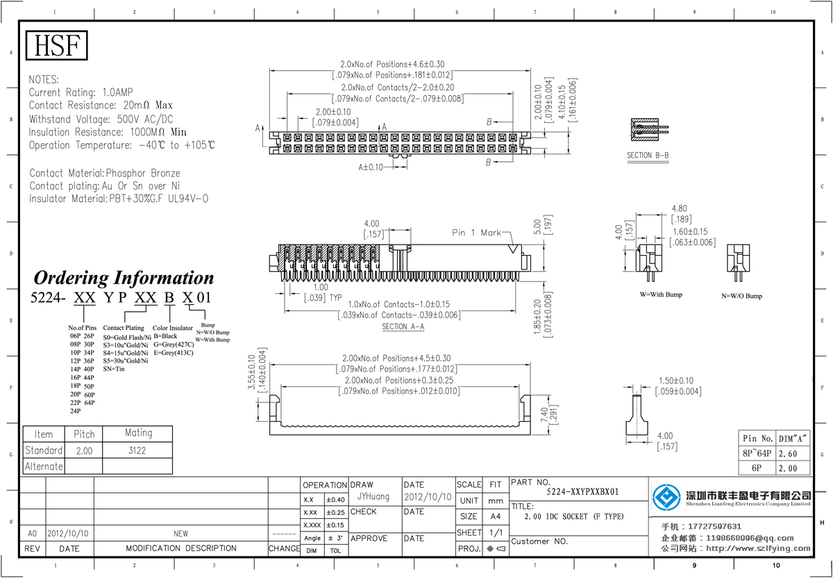 产品分类:IDC插座连接器 产品型号: 2.00 外扣式 两件套 IDC 连接器 联丰盈厂家 技术参数:额定电流:1.0amp电流电阻:20m最大绝缘电阻:1000mmin耐压:1000V AC /分钟工作温度:40﹣℃+ 10